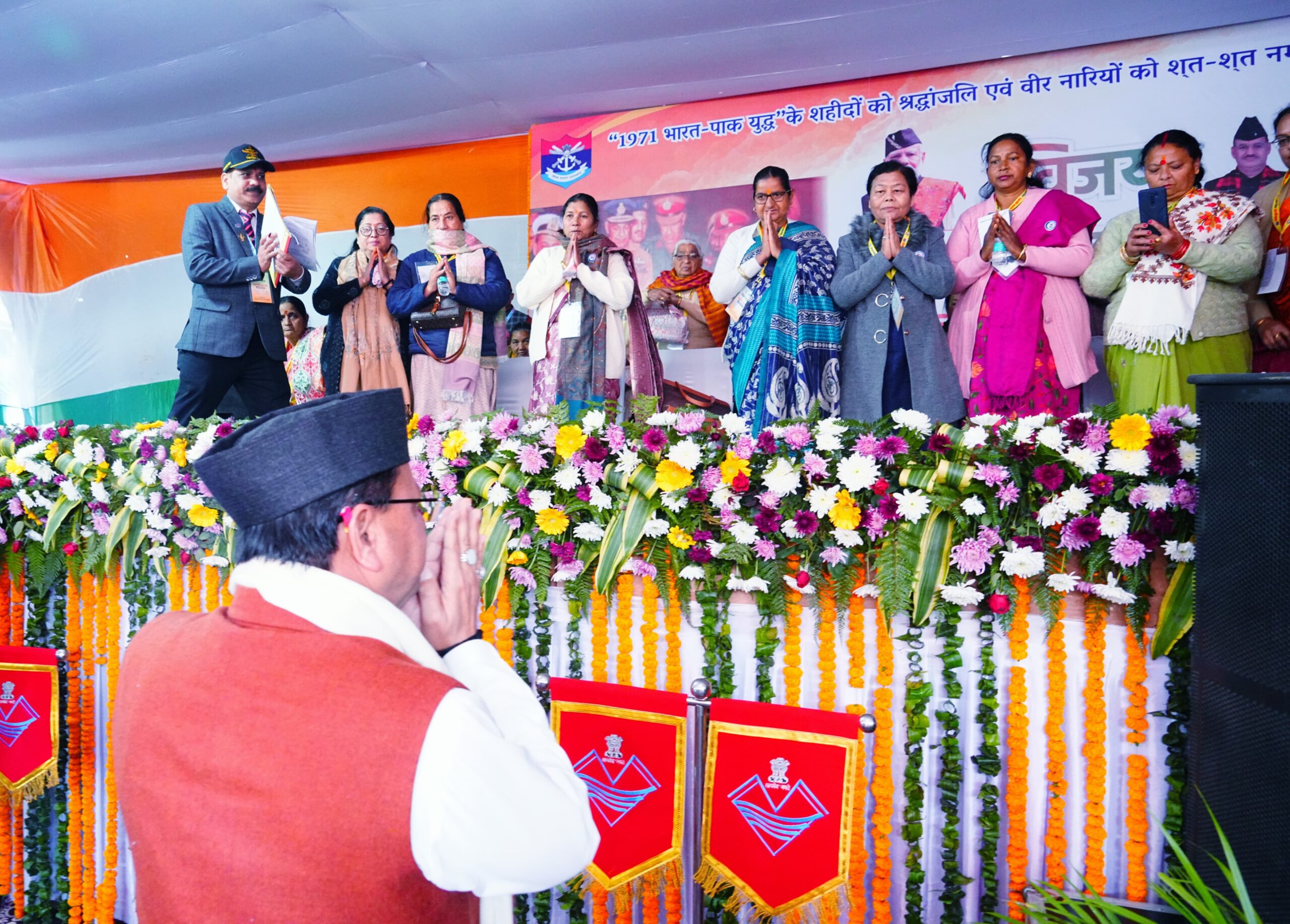 मुख्यमंत्री ने कहा कि 1971 में पाकिस्तान के लगभग 93 हजार सैनिकों ने हमारी सेना के समक्ष आत्मसमर्पण किया। उन्होंने कहा कि इस युद्ध में वीरभूमि उत्तराखंड के 248 बहादुर सपूतों ने भी अपना सर्वोच्च बलिदान दिया। हमारे प्रदेश के 74 सैनिकों को अपने अदम्य साहस और शौर्य के लिए विभिन्न वीरता पदकों से सम्मानित भी किया गया था। उन्होंने कहा कि उत्तराखंड के लगभग प्रत्येक परिवार का कोई न कोई सदस्य सेना में है। प्रधानमंत्री श्री नरेंद्र मोदी के नेतृत्व में जवानों का मनोबल बढ़ाने के साथ ही सेना को अत्याधुनिक तकनीक और हथियारों से सुसज्जित किया जा रहा है।