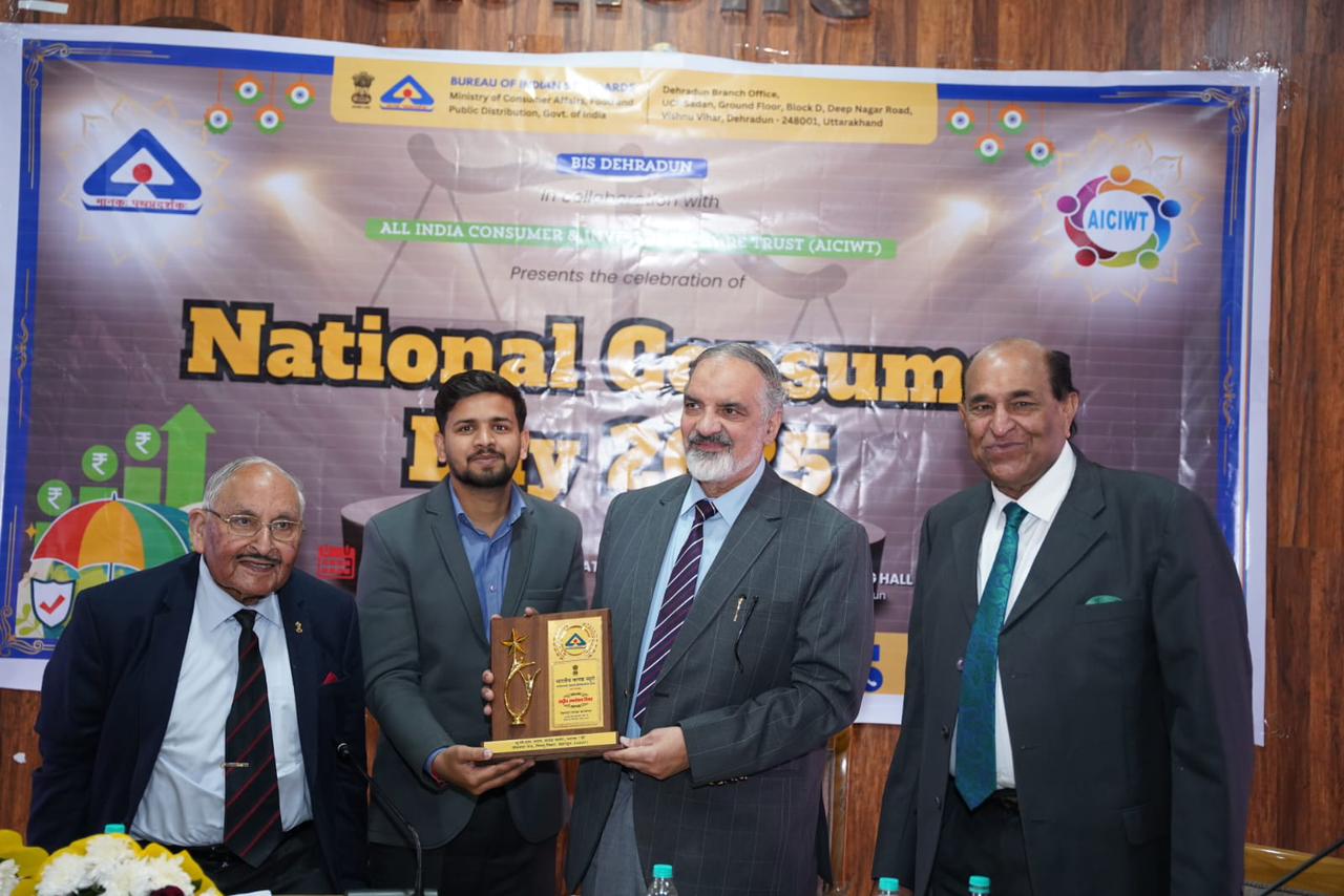 24 दिसंबर । राष्ट्रीय उपभोक्ता अधिकार दिवस के अवसर पर जिला पंचायत सभागार, होटल गौरव, तहसील चौक, देहरादून में भारतीय मानक ब्यूरो (BIS), देहरादून एवं ऑल इंडिया कंज़्यूमर एंड इन्वेस्टर वेलफेयर ट्रस्ट, देहरादून के संयुक्त तत्वावधान में एक विशेष जन-जागरूकता कार्यक्रम का आयोजन किया गया। कार्यक्रम की थीम “सशक्त उपभोक्ता – सतत एवं निष्पक्ष बाज़ार के लिए” रही।