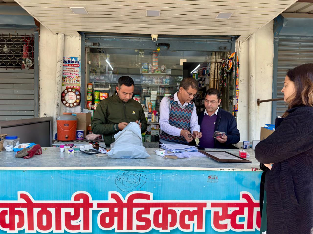 देवभूमि मेडिकोज, महाराणा प्रताप चौक में न तो प्रोपराइटर और न ही लाइसेंसधारी फार्मासिस्ट उपस्थित पाए गए। सीसीटीवी कैमरे का पूर्ण अभाव तथा एक्सपायर दवाइयों के भंडारण की समुचित व्यवस्था न होने पर स्टोर को बंद कर स्पष्टीकरण तलब किया गया।