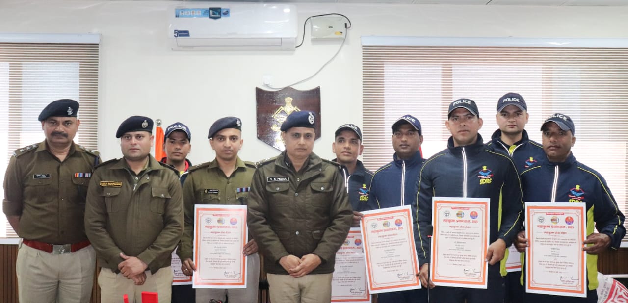 उत्तर प्रदेश सरकार द्वारा प्रदत्त मेडल एवं प्रशस्ति पत्र पुलिस महानिरीक्षक श्री सुनील कुमार मीणा द्वारा एसडीआरएफ के अधिकारियों और जवानों को प्रदान किए गए।