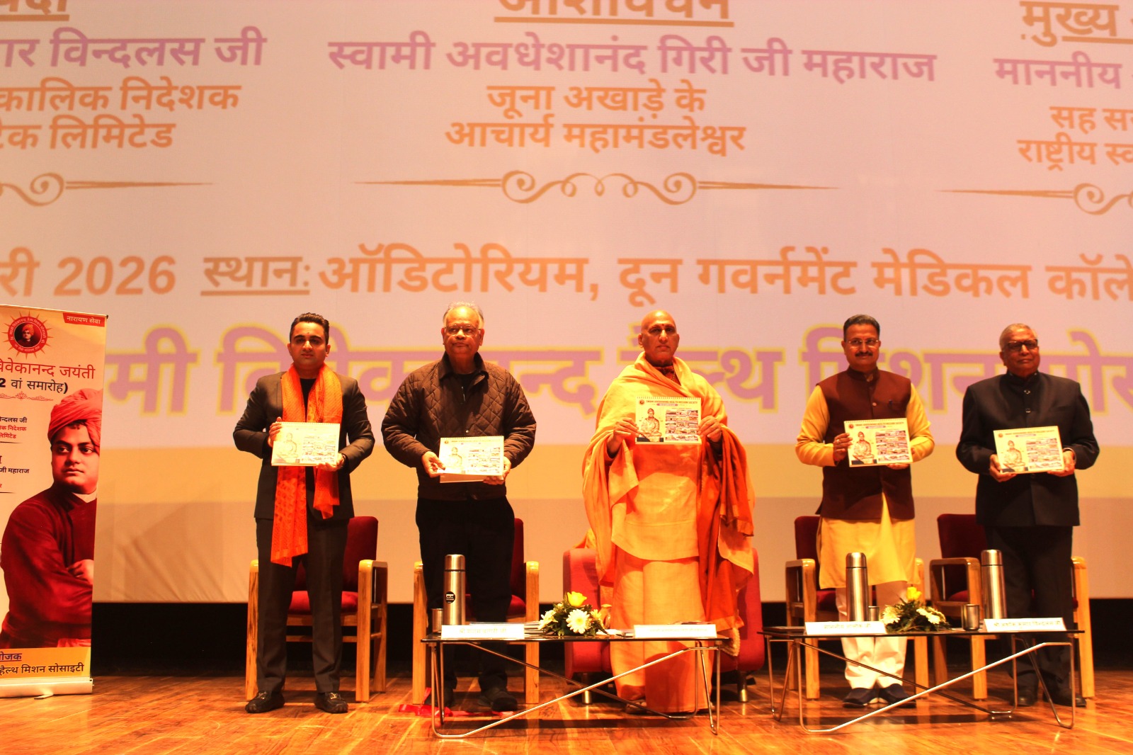 रविवार शाम दून मेडिकल कॉलेज के प्रेक्षागृह में स्वामी विवेकानंद की 162वीं जयंती के अवसर पर स्वामी विवेकानंद हेल्थ मिशन सोसाइटी द्वारा आयोजित समारोह में मुख्य अतिथि के रूप में आलोक कुमार ने संबोधित किया। कार्यक्रम का शुभारंभ आरएसएस के सह सरकार्यवाह आलोक कुमार, जूना अखाड़े के आचार्य महामंडलेश्वर स्वामी अवधेशानंद गिरि महाराज तथा कार्यक्रम के अध्यक्ष अशोक कुमार विंदलस सहित अन्य अतिथियों द्वारा संयुक्त रूप से दीप प्रज्ज्वलन कर किया गया।