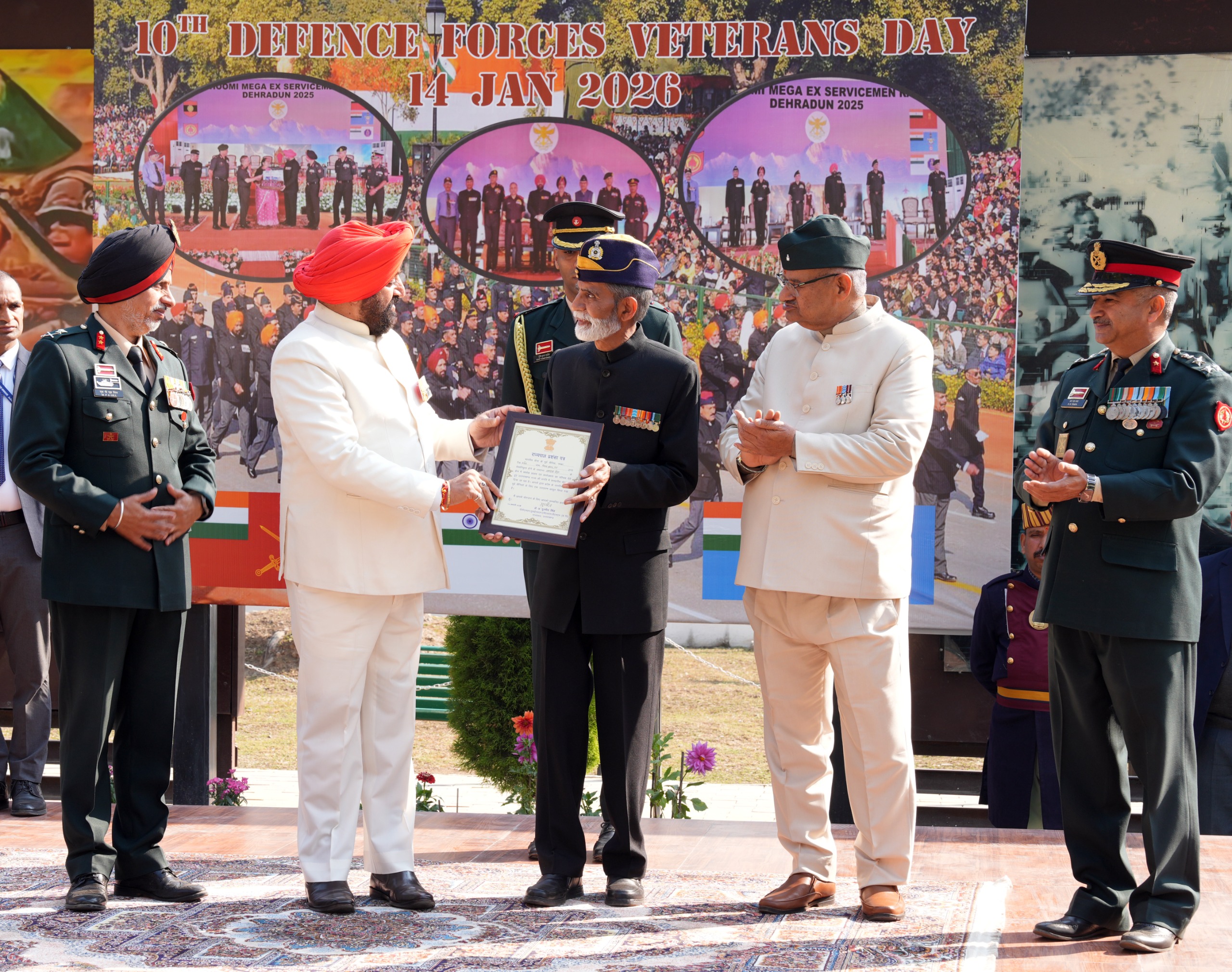 लोक भवन देहरादून 14 जनवरी, 2026 । राज्यपाल लेफ्टिनेंट जनरल गुरमीत सिंह (से नि) ने उत्तराखण्ड सब एरिया द्वारा सशस्त्र बल भूतपूर्व सैनिक दिवस (वेटरन्स डे) के अवसर पर शौर्य स्थल में आयोजित कार्यक्रम में वीर शहीदों को पुष्पचक्र अर्पित कर श्रद्धांजलि अर्पित की। इस अवसर राज्यपाल ने वीर नारियों और भूतपूर्व सैनिकों को उनके उत्कृष्ट योगदान के लिए सम्मानित किया और उनकी देश सेवा और समर्पण के लिए उनका आभार व्यक्त किया। राज्यपाल ने उपस्थित भूतपूर्व, सेवारत सैनिकों और वीर नारियों से मुलाकात भी की।