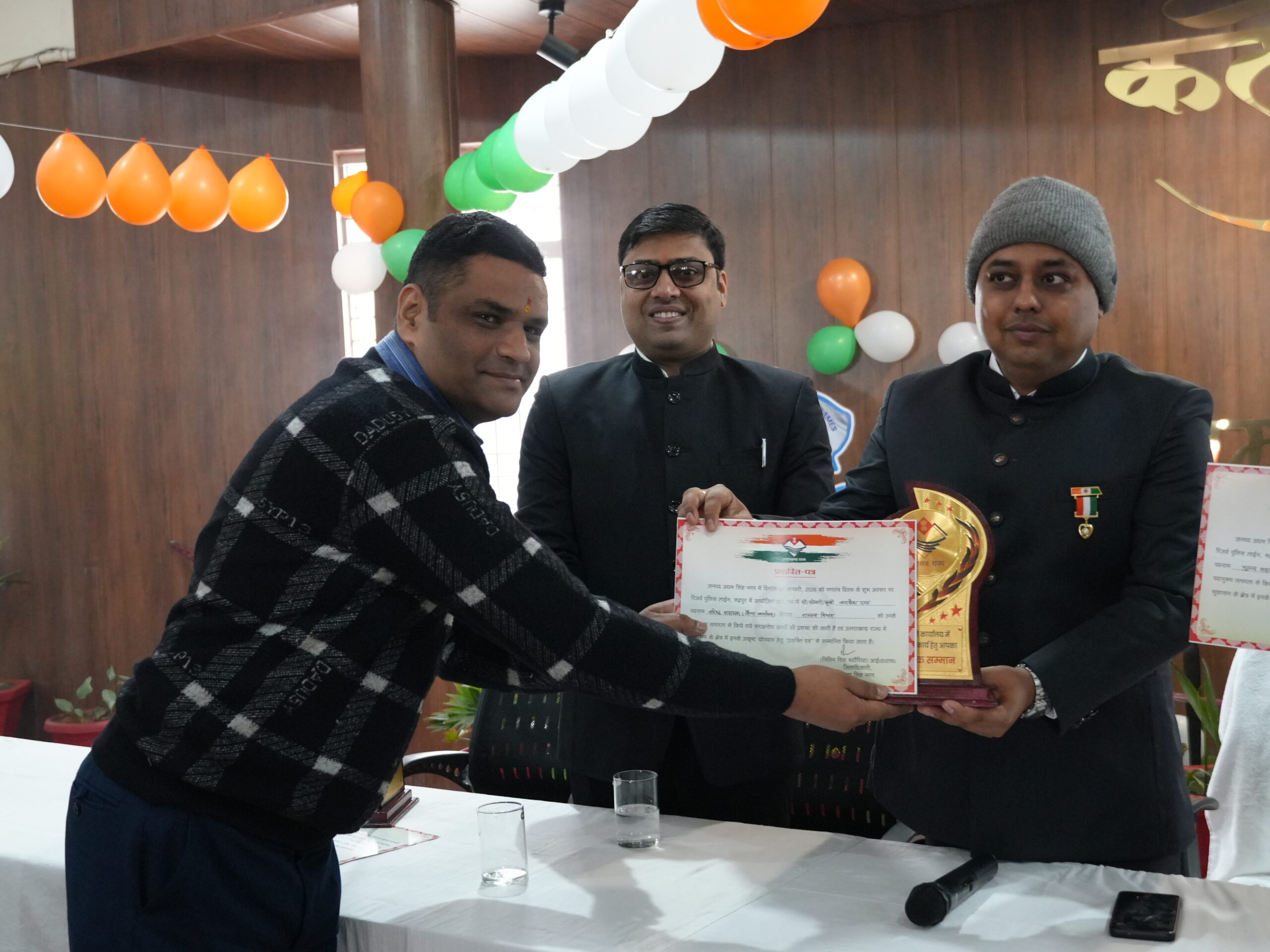 77वां गणतंत्र दिवस जनपद रूद्रपुर में पूरे हर्षोल्लास और गरिमामय वातावरण में मनाया गया। इस अवसर पर जिलाधिकारी श्री नितिन सिंह भदौरिया ने जिला कार्यालय परिसर में ध्वजारोहण किया। कार्यक्रम के दौरान उन्होंने स्वतंत्रता संग्राम सेनानियों एवं उनके आश्रितों को फूलमाला एवं अंगवस्त्र भेंट कर सम्मानित किया तथा उत्कृष्ट कार्य करने वाले कर्मचारियों को भी सम्मान प्रदान किया।