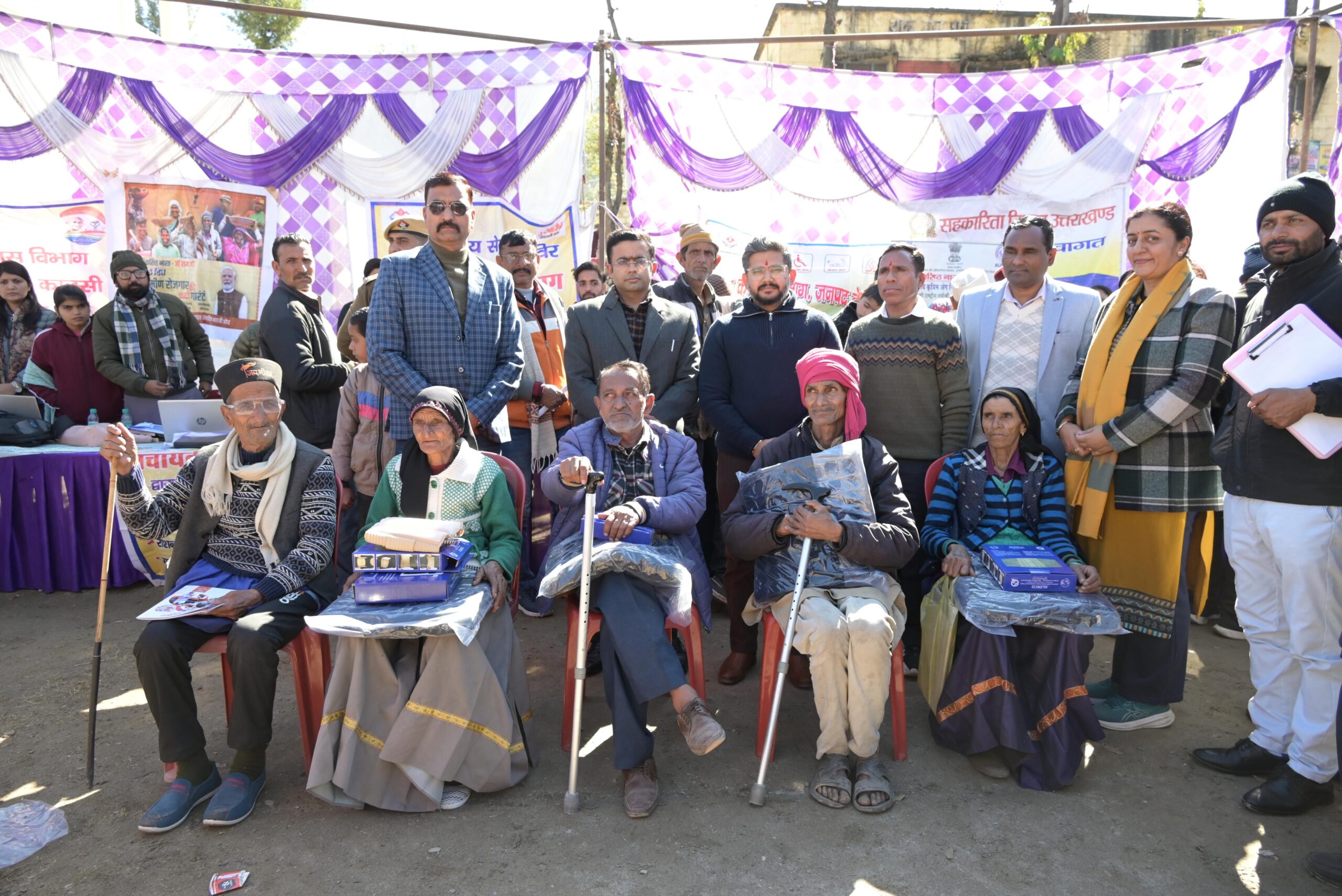 समाज कल्याण विभाग द्वारा प्रधानमंत्री दिव्यांशा केंद्र, देहरादून के सहयोग से एडिप एवं राष्ट्रीय वयोश्री योजना के अंतर्गत 40 दिव्यांगजनों एवं वरिष्ठ नागरिकों को कुल 120 सहायक उपकरण निःशुल्क वितरित किए गए तथा 05 वृद्धजनों की पेंशन हेतु बैंक खाते आधार से सीड किए गए।