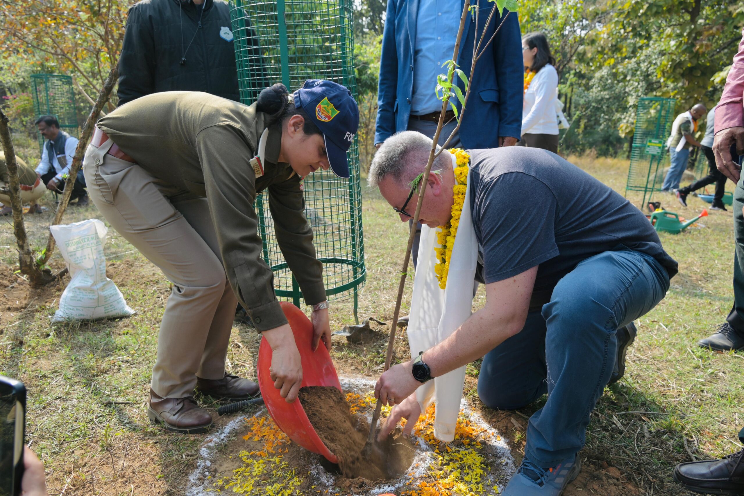 पुरोहितवाला के भ्रमण के उपरांत प्रतिनिधिमंडल मानव भारती एंगल हिल्स स्कूल पहुंचा, जहां स्थानीय नागरिकों ने उनका भव्य स्वागत किया। प्रतिनिधियों ने स्थानीय निवासियों से संवाद कर उनके अनुभव साझा किए तथा पर्यावरण संरक्षण के क्षेत्र में किए जा रहे कार्यों की सराहना की। इस अवसर पर प्रतिनिधिमंडल के सदस्यों ने विद्यालय परिसर में पौधारोपण भी किया।