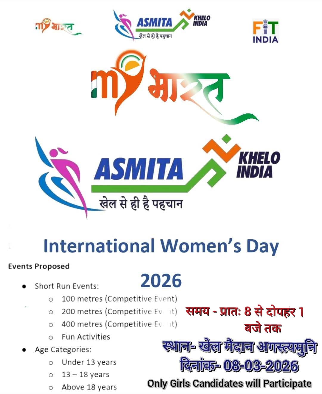 यह कार्यक्रम Ministry of Youth Affairs and Sports की पहल ‘अस्मिता’ के अंतर्गत Sports Authority of India और Mera Yuva Bharat के संयुक्त प्रयास से आयोजित किया जा रहा है। कार्यक्रम प्रधानमंत्री Narendra Modi की उस सोच के अनुरूप है, जिसमें गांवों और छोटे कस्बों की लड़कियों को खेलों में आगे बढ़ने के लिए प्रोत्साहित किया जा रहा है।
