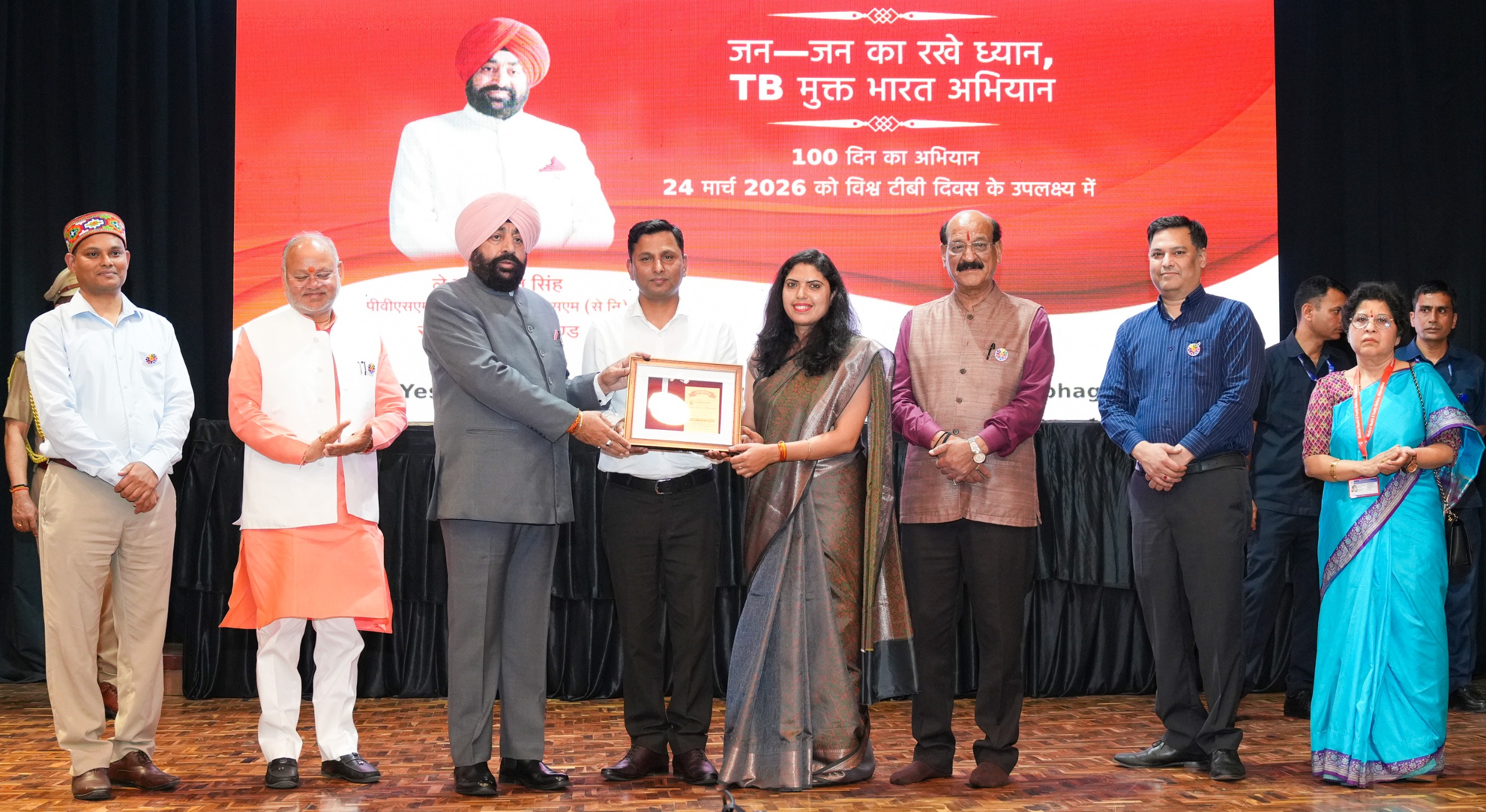 राज्यपाल लेफ्टिनेंट जनरल गुरमीत सिंह (से नि) ने मंगलवार को लोक भवन में राष्ट्रीय स्वास्थ्य मिशन, उत्तराखण्ड द्वारा विश्व टीबी दिवस के अवसर पर ‘‘100 दिन सघन टीबी उन्मूलन’’ अभियान का शुभारंभ किया। इस अभियान के अंतर्गत उन्होंने मोबाइल वैन को भी फ्लैग ऑफ किया। इस अवसर पर राज्यपाल ने टीबी रोगियों को गोद लेकर नियमित निगरानी एवं मानसिक संबल प्रदान करने वाले निक्षय मित्रों को सम्मानित किया। कार्यक्रम में राज्यपाल ने टीबी उन्मूलन की दिशा में उत्कृष्ट कार्य करने वाले जनपद देहरादून, ऊधमसिंह नगर एवं पिथौरागढ़ को सम्मानित किया तथा टीबी से स्वस्थ हुए ‘टीबी चैंपियनों’ को भी सम्मानित किया।