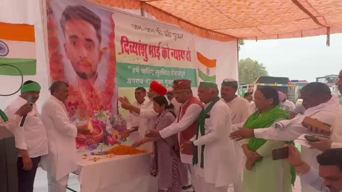 । राजधानी देहरादून में बीते 23 मार्च को मुजफ्फरनगर के छात्र दिव्यांशु जटराना की हत्या हुई थी। दिव्यांशु जटराना की हत्या का मुद्दा लगातार गरमाता जा रहा है। किसान नेता राकेश टिकैत के नेतृत्व में पश्चिमी यूपी और उत्तराखंड के तराई इलाकों से हजारों किसान देहरादून पहुंचे और देहरादून के आशारोड़ी चेकपोस्ट पर शोक सभा के साथ विरोध प्रदर्शन किया।